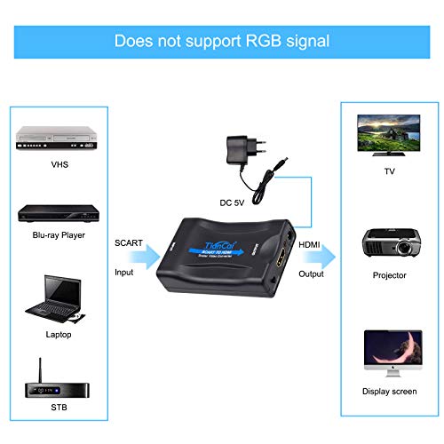 Tihokile 1080P Adattatore da Scart a HDMI, Convertitore Scart a HDMI Compatibile con VHS STB Sky HD Blu-Ray TV VCR VHS