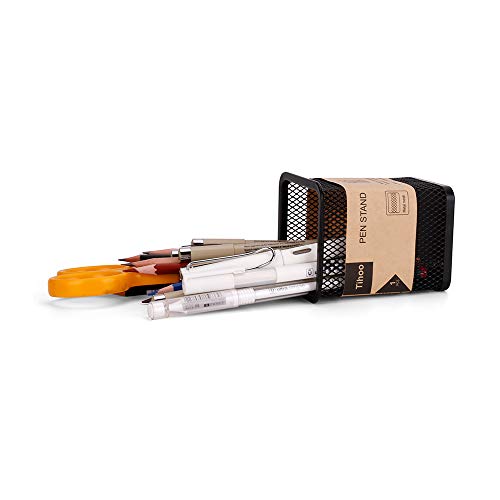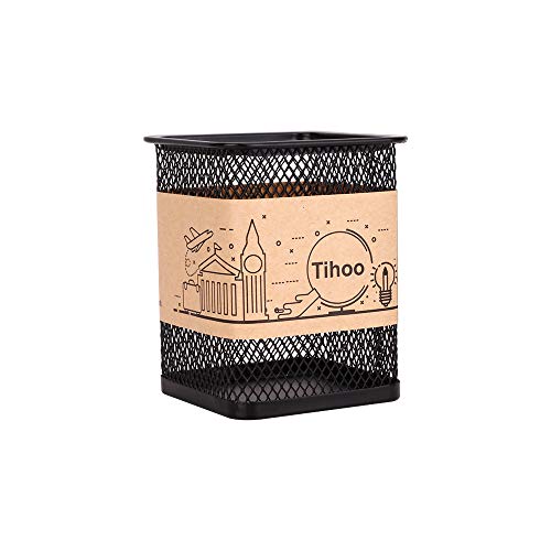 Tihoo Portapenne in rete metallica nera, organizer quadrato per penne, portamatite in metallo per scrivania da ufficio, design semplice e moderno