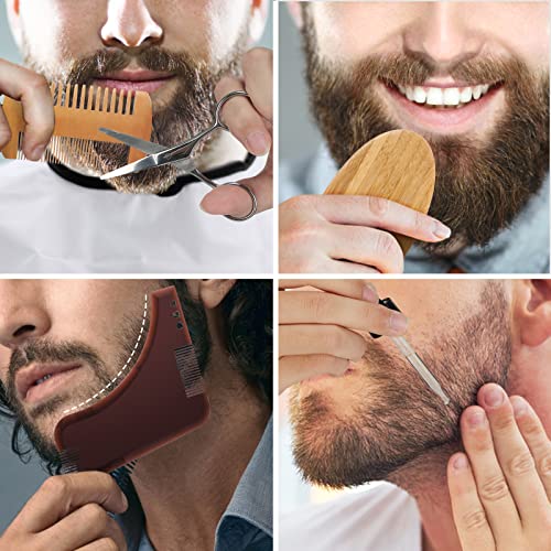 【Set 10 in 1】 Il nostro set per barba contiene detergente per barba, balsamo per barba, olio per barba, pettine, pennello, rasoio, forbici, sagoma per barba, bavaglino, custodia per rasoio. È lo strumento perfetto per la cura della barba maschile.