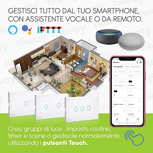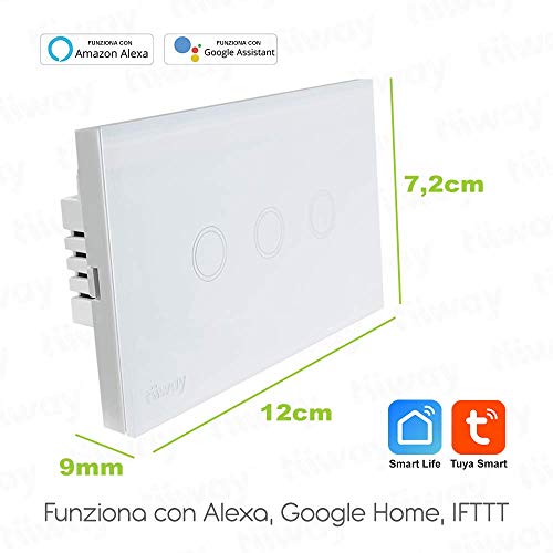 Tiiway - Interruttore Smart Touch Wifi, compatibile per scatola 503 - App Smart Life/Tuya - 3Vie