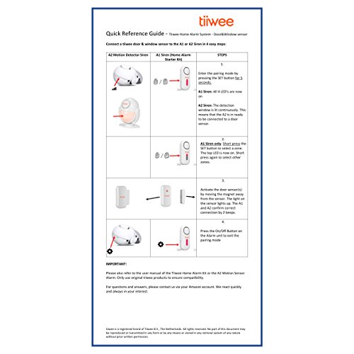 Il sensore finestra & porta è compatibile con i prodotti Tiiwee Home Alarm System - Tiiwee Home Alarm Starter Kit e A2 PIR Motion Sensor Alarm. Completamente wireless e alimentato a batteria - batterie e materiale di montaggio inclusi.