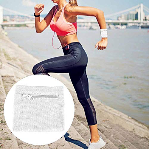 Tiiyee Portafoglio da Polso, Polso Allenamento con Cerniera Palestra Corsa Tasca Traspirante Polsino Sportivo Unisex Portamonete Cotone Sport Cinturino Fascia Braccio per Aperta Esecuzione (Bianco)