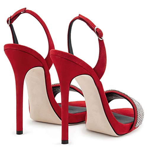 TIKENBST Tacchi Donna Tacchi Alti 13CM Sandali Scarpe da Donna Strass Open Toe Tacchi Alti Estivi Fatti A Mano su Misura,Red-43