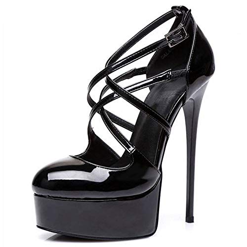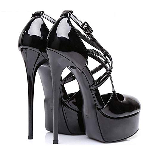 TIKENBST Tacchi Donna Tacchi Alti 16CM Sandali con Plateau con Tacco Alto Scarpe con Lacci Incrociati con Cinturino alla Caviglia,Black-46