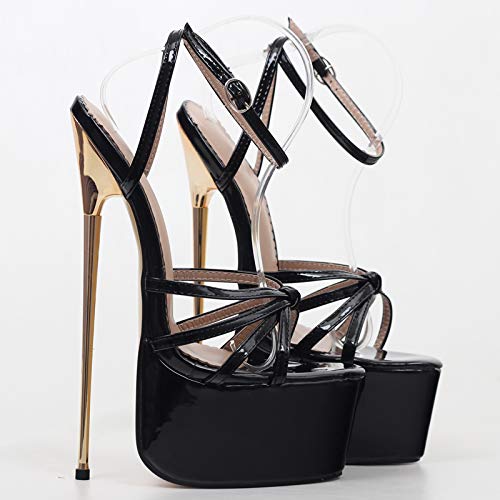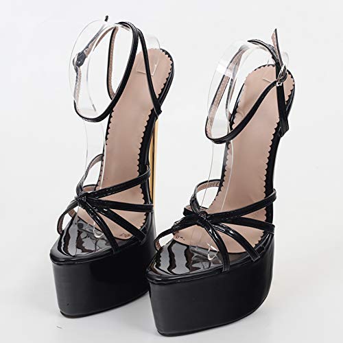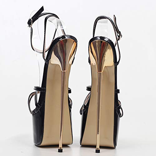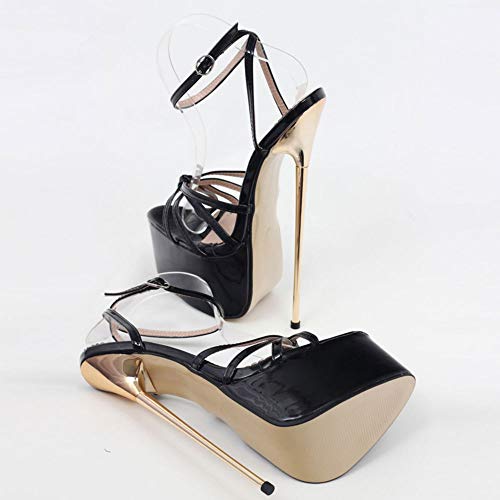 TIKENBST Tacchi Donna Tacchi Alti 22CM Sandali con Tacco Super Alto Piattaforma con Tacco in Metallo Attraente,Black-44