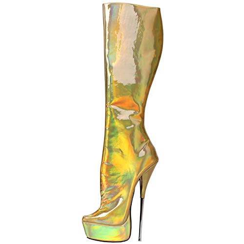 TIKENBST Tacchi Donna Tacchi Alti Stivali Alti al Ginocchio 20CM Piattaforma Impermeabile Symphony Holographic Pole Dance Shoes,I-39