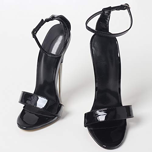 TIKENBST Tacchi Donna Sandali con Tacco Alto in Metallo Nero con Tacco A Spillo da 18 Cm,Black-42