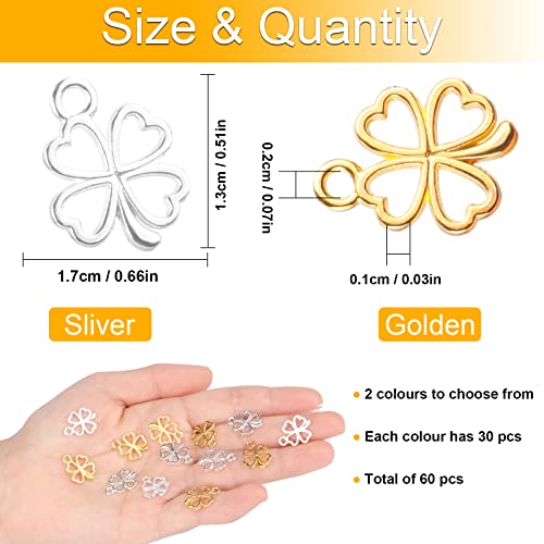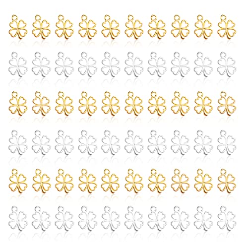 Tikplus 60 ciondoli a forma di quadrifoglio, in metallo, per braccialetti fai da te, regalo di addio, portachiavi a forma di quadrifoglio, ciondolo per gioielli, Lega di acciaio