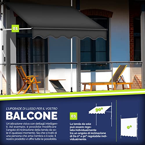 A CIASCUNO LA SUA ALTEZZA: La manovella in dotazione consente una regolazione dell'inclinazione e dell'altezza (200-300cm) e una protezione solare perfetta. La nostra tenda per terrazza può essere estratta sia in diagonale che in verticale. L'avvolgimento completo della tenda consente anche di riporla in poco spazio.
