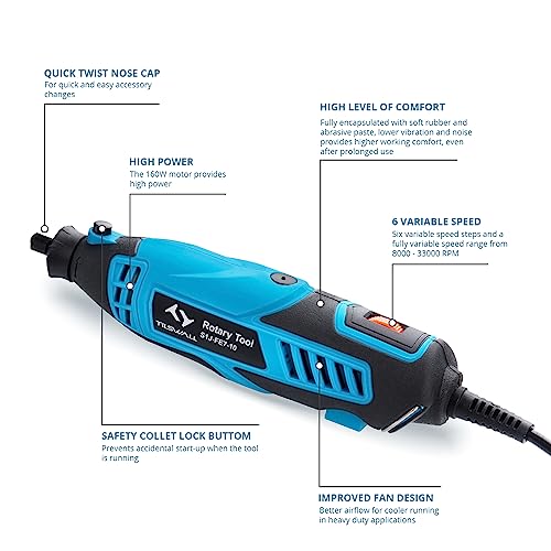 Tilswall Strumento Multifunzione,160W Utensile Rotante con 3 Attacchi 47 Accessori, 8000-33000RPM,6 Velocità Regolabile,Mini Utensile Rotante per Tagliare,Lucidare, Fai da te