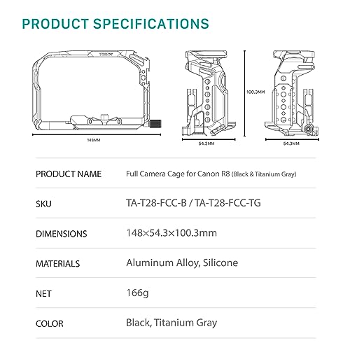 Tilta Gabbia per fotocamera completa compatibile con Canon R8 con supporto adattatore EF-R, morsetto per cavo micro HDMI e USB-C e chiave a brugola, colore nero, TA-T28-FCC-B
