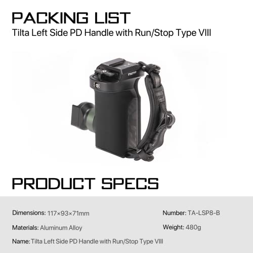 Tilta Maniglia PD lato sinistro con Run/Stop Tipo VIII per R5, R5 C, R6 Mark II, LUMIX S5M2, LUMIX GH6, BMPCC 4K/6K/6K PRO - Nero TA-LSP8-B