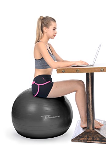 Timberbrother Palla da Ginnastica / Palla Fitness 65 Centimetri Diametro con la Pompa per lo Yoga, Pilates, Fitness, Fisioterapia, Palestra e esercizi a casa (Nero)