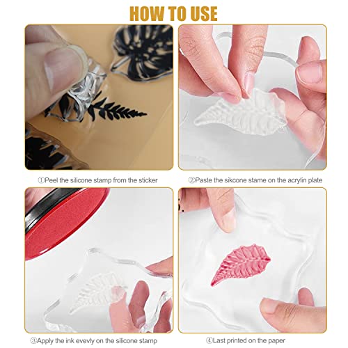 Facile da usare - Basta rimuovere il timbro dal foglio trasparente e applicarlo su un blocco acrilico (non incluso). Applicare l'inchiostro sul timbro, posizionare l'immagine sulla superficie desiderata e premere saldamente, quindi lasciarli asciugare all'aria, allora il lavoro squisito è compiuto .