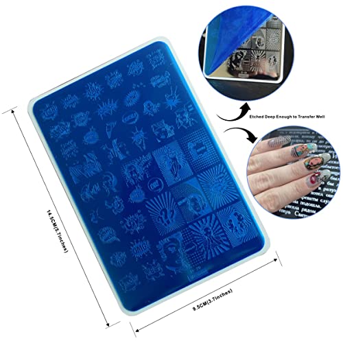 【MATERIALE DI QUALITÀ】Le stencil unghie nail art sono realizzate in acciaio inossidabile 304,sicure e prive di tossine,senza piegature,robuste e abbastanza resistenti da durare a lungo,le nail art stamping sono incise abbastanza in profondità da contenere abbastanza smalto per una bella timbratura opaca Risultato,Puoi ottenere il fai-da-te con i tuoi disegni di unghie preferiti con queste piastre per unghie riutilizzabili