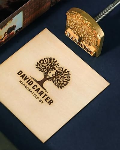 Timbro in ferro bruciato a caldo con logo personalizzato per legno, pelle, barbecue, branding, timbro in ferro con manico in legno testa in ottone (2,5 x 2,5 cm)