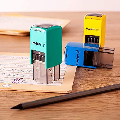 Timbro motivazionale per insegnanti di scuola elementare Trodat Edy - Non lasciatevi appesi, 20 x 20 mm, stampa blu