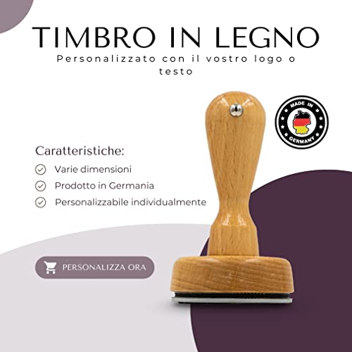 Timbro personalizzato, timbro con logo/testo, timbro aziendale con logo e testo, timbro con indirizzo e data in legno, varie dimensioni (ø 60mm)