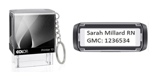 Infermieri/Midwife/medici timbro con portachiavi attaccato - auto inchiostrazione personalizzato - fino a 3 linee 25 x 9 mm
