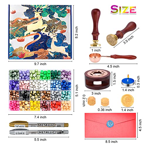Kit Timbro Sigillo di Cera, 630 Pezzi Perline di Cera con Confezione Regalo, Timbro Sigillo di Cera con Timbro Ceralacca, Scalda Sigillo di Cera