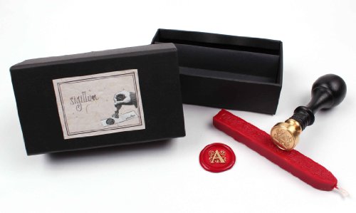 Timbro "Sigillum" Incisione L + 1 asta di cera sigillata in confezione regalo