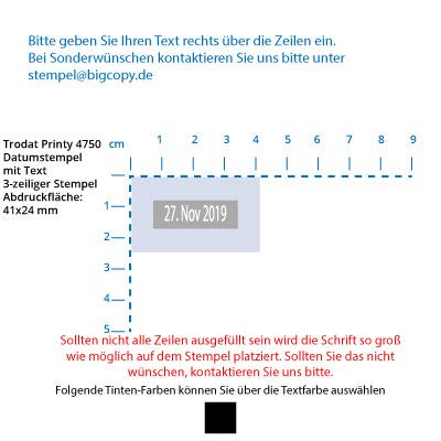 Trodat Printy Timbro datario con testo individuale 4750, timbro a 3 righe (41 x 24 mm) Serie L'originale Printy 4.0 è ecologico. E il modello di serie.