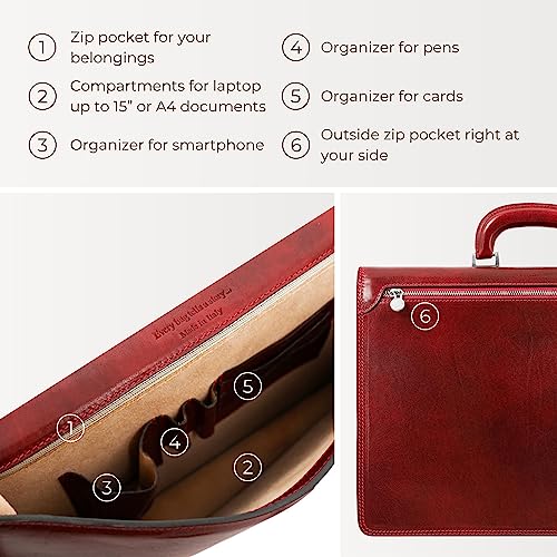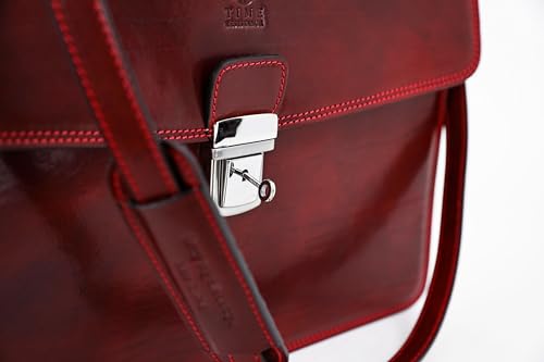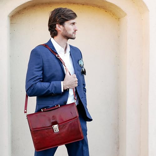 Time Resistance Ventiquattrore Uomo Fatta a Mano in Italia da Esperti Artigiani - Borsa da Lavoro in Vera Pelle con Chiusura a Scatto - Borsa in Pelle da Portare a Mano o a Tracolla (Rosso)