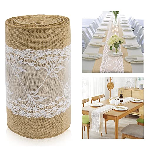 Time to Sparkle 10Mx30cm Rotolo Runner da Tavola in Iuta Pizzo Juta Naturale Rustico per Matrimoni Stile Decorazione Boda, Iuta Pizzo nel Mezzo 10Mx30cm