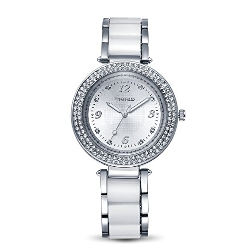 TIME100 Orologio da donna al quarzo Ceramica high-end Fashion Flash Diamond Puntatore luminoso Colore acciaio W50841L