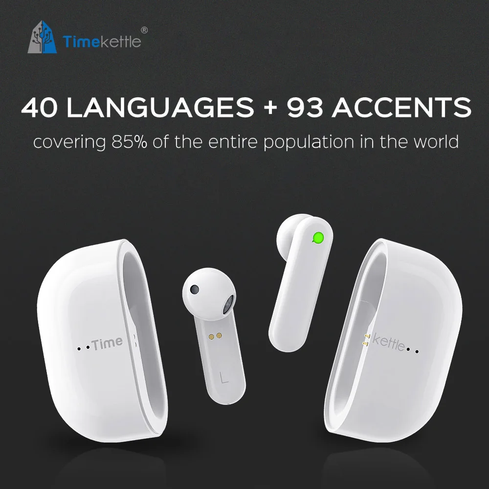TimeKettle WT2 Plus Simultaneous Translator Headset Business Interpretation Overseas Travel Support 40 Language Earplugs