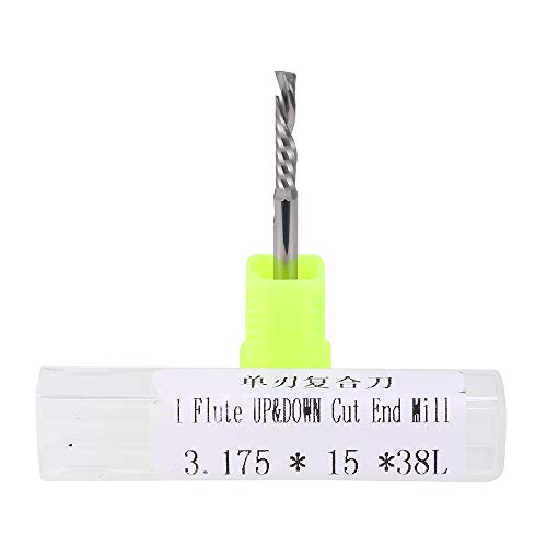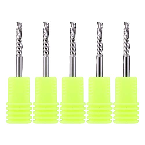 Timelee UP Down Cut 1 Flauto a spirale in carburo fresa fresa CNC fresa a fresa con gambo da 1/8", diametro di taglio 1,5 mm, lunghezza di taglio per legno compensato MDF, confezione da 5