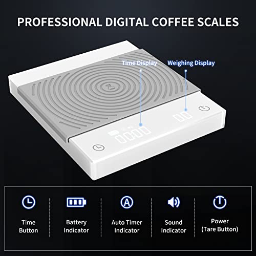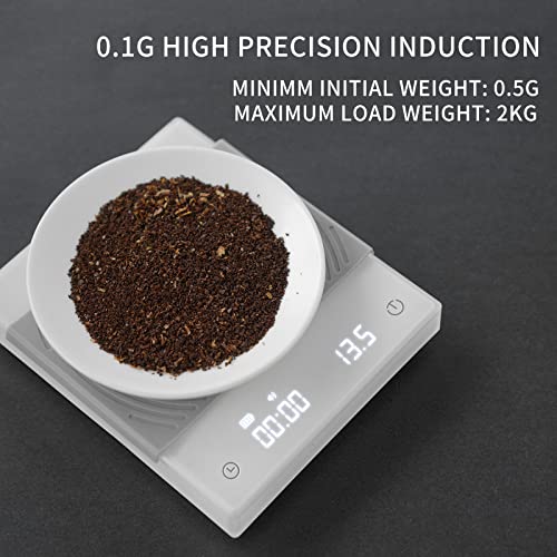 TIMEMORE Basic Mirror Plus Bilancia Digitale per Caffè Bilancia Digitale per Espresso da 0,1g con Timer Bilancia da Barista Multifunzione da 2kg/0,1g Bilancia per Alimenti a Graduazione Precisa Bianco