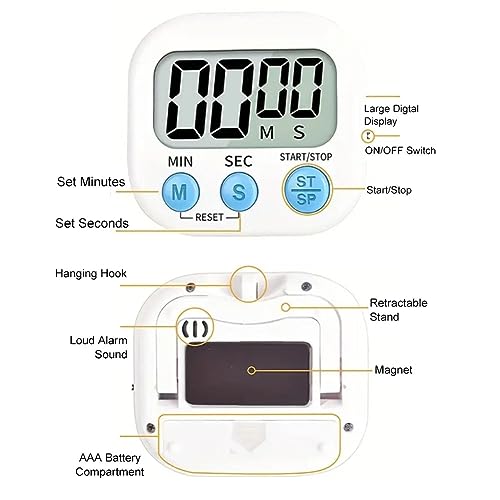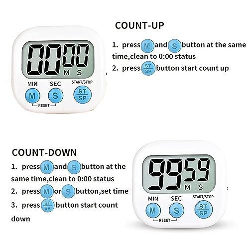 Multiuso: Il timer da cucina può essere utilizzato come timer per contare su e giù. Timer digitale da cucina adatto per varie attività come tempo di apprendimento, tempo di cottura, tempo di cottura, tempo di allenamento, tempo di bellezza, tempo di riunione, tempo di farmaci, ecc.