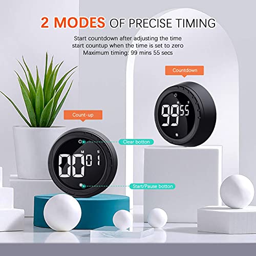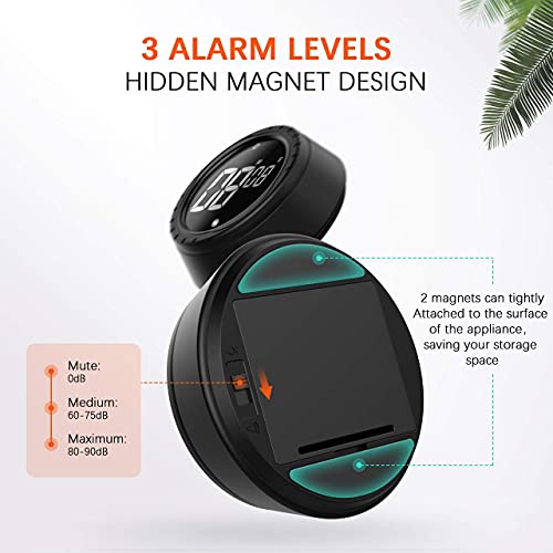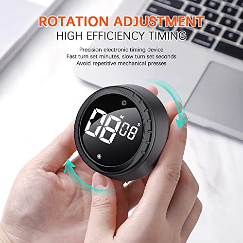 Timer da Cucina, Digitale Sveglia Egg Timer Magnetico Nero, Cronometro e Conto alla Rovescia Timer con Display LCD, Manopola Twist Design, per Cucinare, Cuocere al Forno, Fare Sport, Imparare