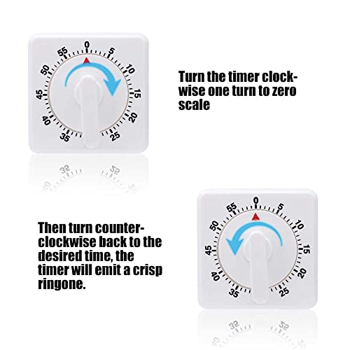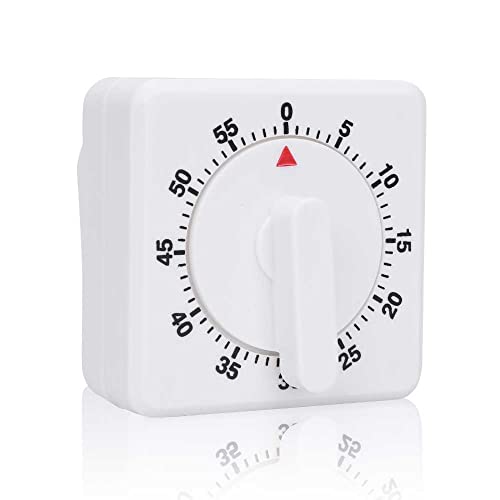 Timer da Cucina, Timer da Cucina Meccanico Classico, con Rotazione, Conto alla Rovescia e Suono di Allarme, Ideale per la Cottura al Forno, 60 Minuti, Bianco