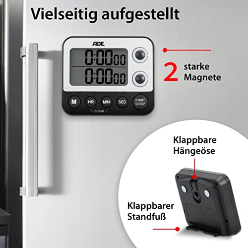 ADE Timer digitale 2 conti alla rovescia/timer contemporaneamente | cronometro | magnetico | allarme visivo | nero