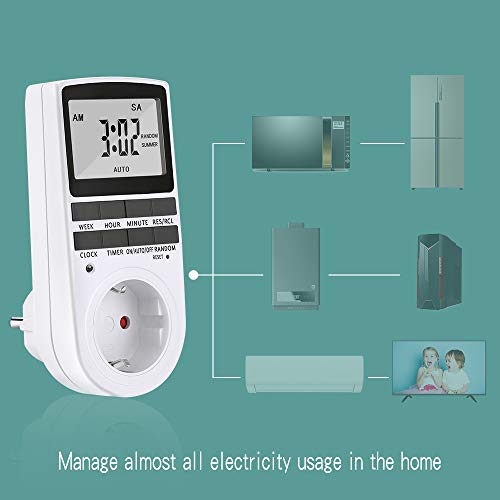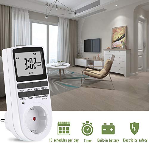 Timer digitale, timer elettrico digitale, presa con 10 programmi configurabili e display LCD, 3680 W 12/24 h, interruttore di presa, protezione bambini, spegnimento casuale, Beige