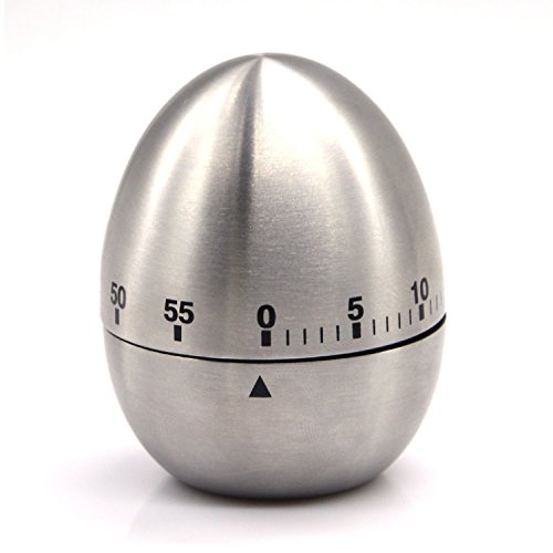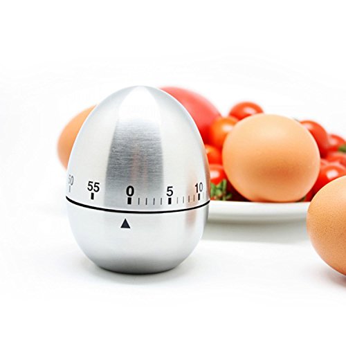 Timer meccanico con conto alla rovescia e timer in acciaio inox, timer da cucina multifunzione a forma di uovo per cucina, cucina, cucina, ufficio, rotazione a 360 gradi, allarme forte in argento