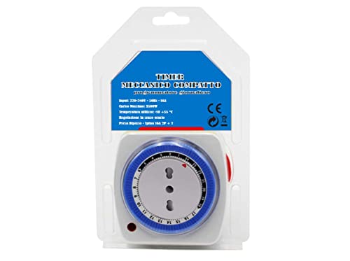 Timer Presa Elettrica, Temporizzatore, Programma Giornaliero 24 Ore, Spina 16A, Bipasso 10/16A (Compatto)