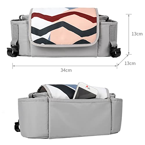 Timertick Borsa per Passeggino Universale con Ganci, Organizer per Passeggino con Portabicchieri e Scomparto per Salviettine (Grigio)
