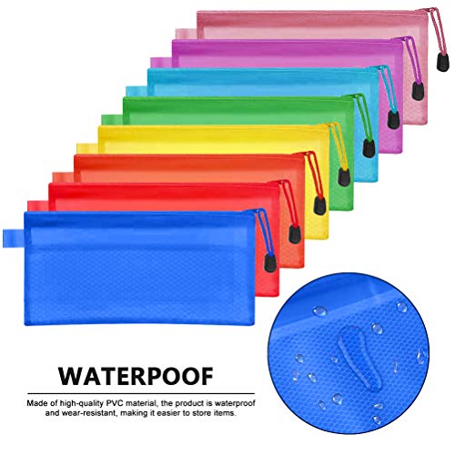 TIMESETL 16 pezzi A6 zip file borse, 8 colori impermeabile cerniera busta matita sacchetto, doppio strato documenti archiviazione cartelle per penne cosmetici accessori da viaggio