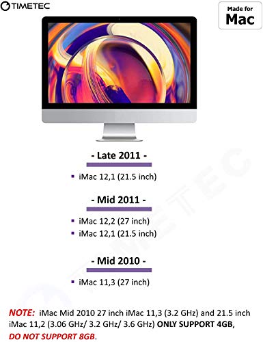 NOTA: iMac metà 2010 iMac 11.3 da 27 pollici (3,2 GHz) e iMac 11.2 da 21,5 pollici (3,06 GHz/ 3,2 GHz/ 3,6 GHz) SUPPORTANO SOLO 4 GB, NE NON SUPPORTA 8 GB.