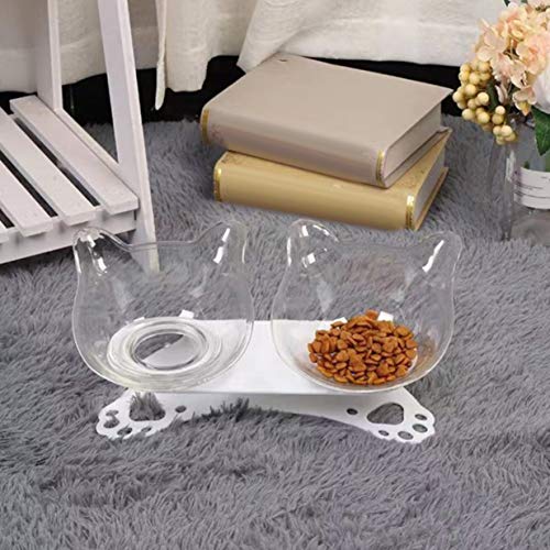 Timetided Ciotola per Cani da 15 Gradi Bocca obliqua Doppia Ciotola Ciotola per Cani Ciotola per Cibo per Cani per Animali Domestici Ciotola per Gatti ortopedici Anti-Vomito - Trasparente