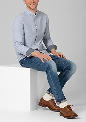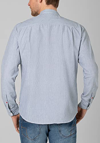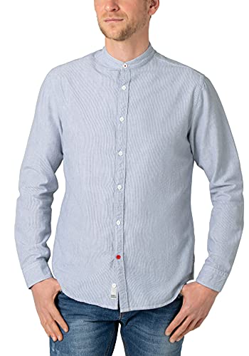 Timezone Camicia con Colletto Alto, Blu Bianco Gessato, S Uomo