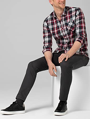 Timezone Effect Weave Shirt Camicia, Red Anthra Check, S Uomo