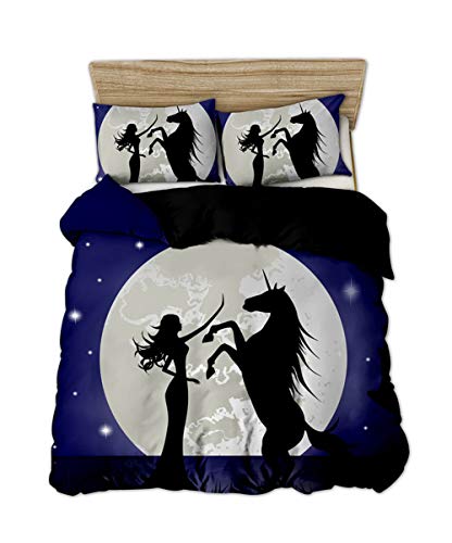 INCLUSO IN CONSEGNA: set di biancheria da letto per unicorno per bambini con glitter, composto da 1 x copriletto e 2 x fodera per cuscino. Questo design funziona bene come idea regalo per ragazzi, ragazzi e ragazze.