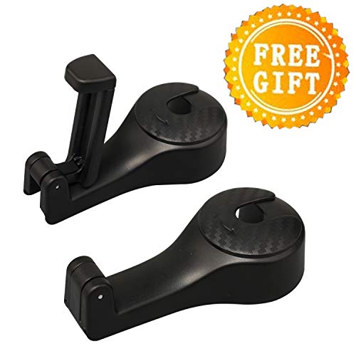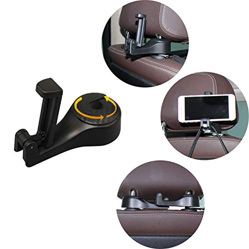 Ganci per poggiatesta - il gancio per poggiatesta suv installato sull'asta del poggiatesta dell'auto consente di appendere vestiti, borse, ombrelli, bottiglie d'acqua, giocattoli per bambini, articoli per bambini e così via, appendiabiti per poggiatesta con supporto per telefono, la dimensione della staffa del telefono è 2,2 pollici / 5,6 cm e fino a 3,54 pollici / 9 cm dopo l'allungamento.