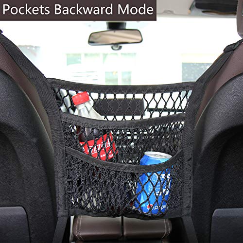 Timorn Rete Portaoggetti Auto, Organizer Auto, Auto Ganci per Poggiatesta con Supporto per Telefono, Rete Auto per Cani Barriera per Cani, Tasca A Rete Per Auto