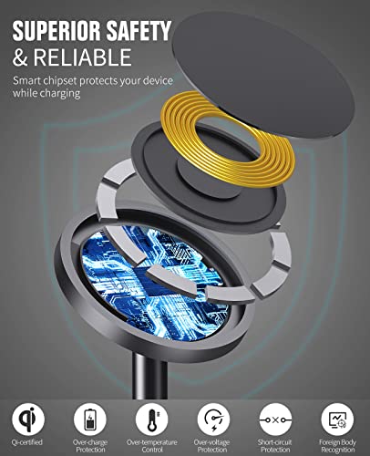 MATERIALE DI ALTA QUALITÀ - Realizzato in lega di alluminio di alta qualità e vetro, il caricatore ha una buona dissipazione del calore. Si consiglia di utilizzare la serie Phone 13 e Phone 12 o una custodia protettiva ufficiale con uno spessore ≤ 3 mm durante la ricarica. NOTA: Si prega di rimuovere l'anello metallico, la carta di credito e il timbro magnetico sul retro della custodia protettiva.