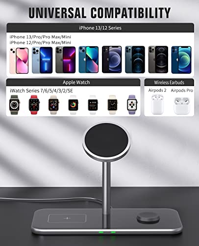 COMPATIBILITÀ - La stazione di ricarica wireless mag-safe supporta la ricarica di più dispositivi. Compatibile con iPhone 14 Pro Max/14 Pro/14/13 Pro Max/13 Pro/13/12 Pro Max/12 Pro/12/12 Mini, Airpods 3/2 Pro, Galaxy Buds, Libertà Air, TWS, iWatch7/6/5/4/3/2/SE. NOTA: È necessario utilizzare un adattatore da 5 V/3 A, 9 V/2 A (caricatore rapido PD/QC 3.0) e un cavo di ricarica rapida.